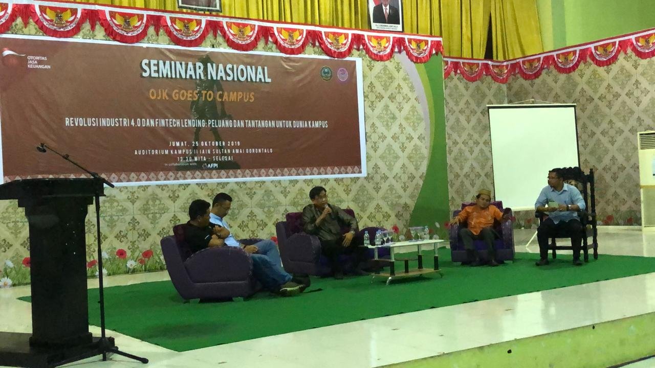 Otoritas Jasa Keuangan (OJK) dan Asosiasi Fintech Pendanaan Bersama Indonesia (AFPI) mengadakan seminar pemahaman soal industri peer-to-peer lending (P2PL) dan fintech lending. Seminar ini merupakan bagian dari program OJK Goes to Campus. Edukasi pemahaman dan inklusi keuangan ini diberikan kepada mahasiswa Institut Agama Islam Negeri Sultan Amai, Gorontalo.