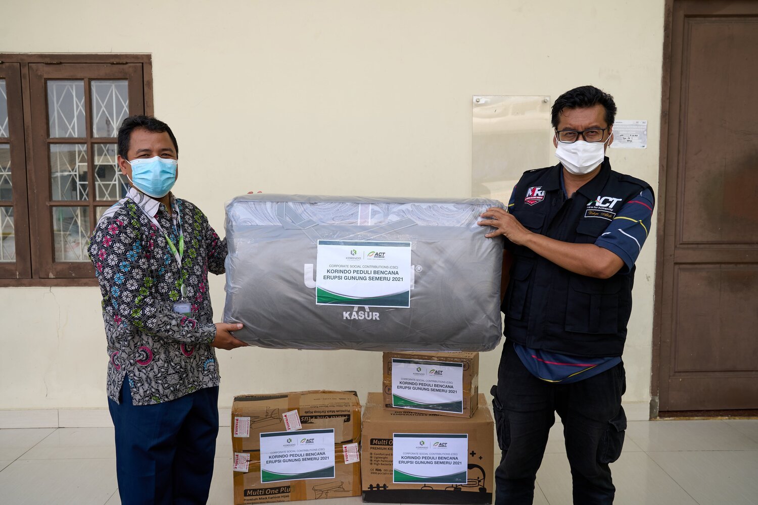 Bantuan yang disalurkan berupa 18 unit kasur lipat, 50 box masker dewasa, 50 box masker anak dan puluhan buah sabun cair. Sekretaris Jenderal Yayasan Korindo, Seo Jeongsik menyebutkan, pemilihan paket bantuan ini telah disesuaikan dengan kebutuhan masyarakat yang harus mengungsi akibat erupsi Gunung Semeru pada awal Desember lalu.