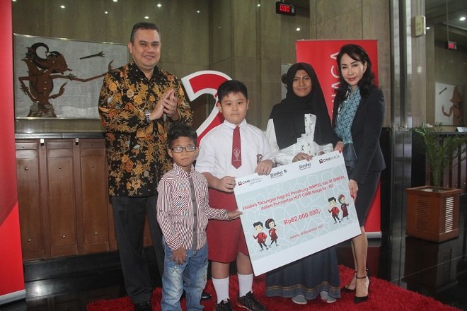 Melalui program yang digelar sejak 2011, sekaligus merayakan Hari Ulang Tahun (“HUT”) ke-62, PT Bank CIMB Niaga Tbk (CIMB Niaga) memberikan apresiasi kepada 62 penabung cilik teraktif yang menggunakan produk Simpanan Pelajar (SimPel) dari 62 kota di Indonesia. Apresiasi dalam bentuk saldo tabungan tersebut diserahkan secara simbolis kepada perwakilan penabung cilik teraktif oleh Direktur Compliance, Corporate Secretary and Legal CIMB Niaga Fransiska Oei dan Direktur Syariah Banking CIMB Niaga Pandji P. Djajanegara di Jakarta, Rabu (27/9).