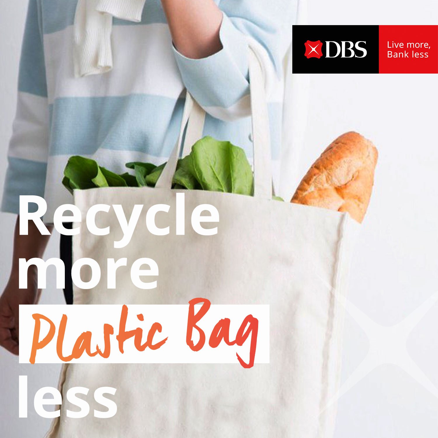 Kementerian Lingkungan Hidup dan Kehutanan (KLHK) menargetkan pengurangan sampah Indonesia sebesar 30 persen pada tahun 2025. Dalam upaya mendukung misi tersebut, Bank DBS Indonesia melaksanakan gerakan peduli lingkungan bertajuk Recycle more, Waste less. Gerakan ini bekerja sama dengan wirausaha sosial dan komunitas yang bergerak di bidang lingkungan, antara lain WWF – Indonesia, Waste4Change, Cleanomic, Zero Waste Indonesia, Evoware, dan Weekend Workshop.
