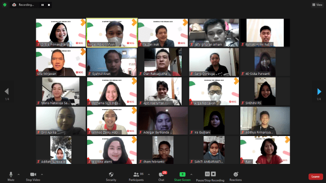Para peserta kegiatan webinar SCG Sharing the Dream 2021 ini pun terlihat sangat antusias selama acara berlangsung. Yosephine Roma, penerima beasiswa SCG Sharing the Dream tingkat SMA tahun 2017 dan tingkat Universitas Sarjana Strata 1 (S1) tahun 2019 ini membagikan pengalamannya.