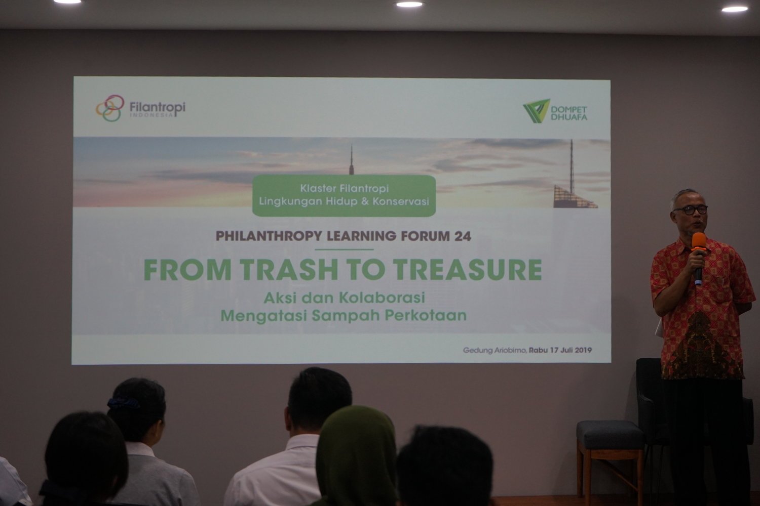 Persoalan sampah di perkotaan kian mengkhawatirkan. Sampah domestik yang didominasi sisa makanan, plastik, terus muncul seakan tak pernah ada habisnya. Pemerintah memang mencanangkan pembangunan pembangkit listrik tenaga sampah. Namun belum terealisasi secara nasional. Perkara sampah ini menjadi tema utama dalam acara diskusi “From Trash to Treasure: Aksi dan Kolaborasi Mengatasi Sampah Perkotaan” yang digelar Filantropi Indonesia bekerjasama dengan Dompet Dhuafa pada Rabu (17/7/19) di Gedung Ariobimo, Kuningan, Jakarta Selatan.