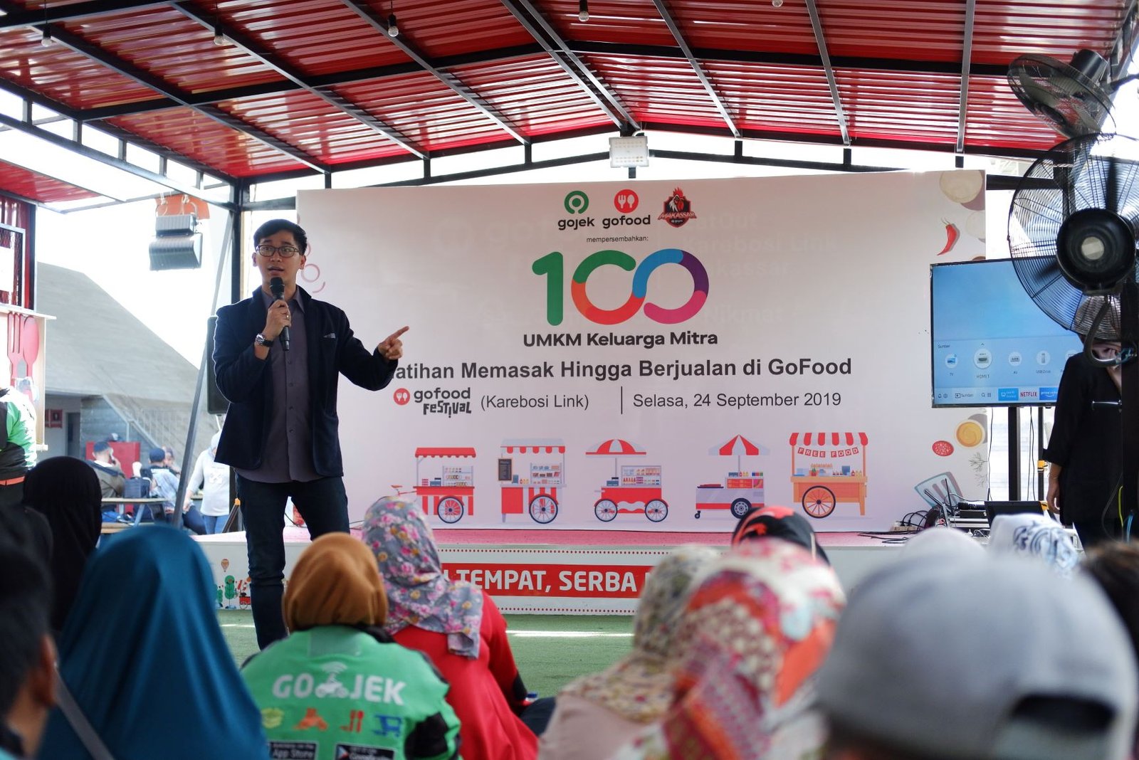 Sebagai aplikasi teknologi yang berfokus pada pemberdayaan sektor informal, Gojek berkomitmen untuk meningkatkan taraf hidup mitra dan keluarganya. Salah satunya menggelar kegiatan pelatihan 100 UMKM Keluarga Mitra di Makassar yang diadakan di Go Food Festival Karebosi Link, Makassar.
