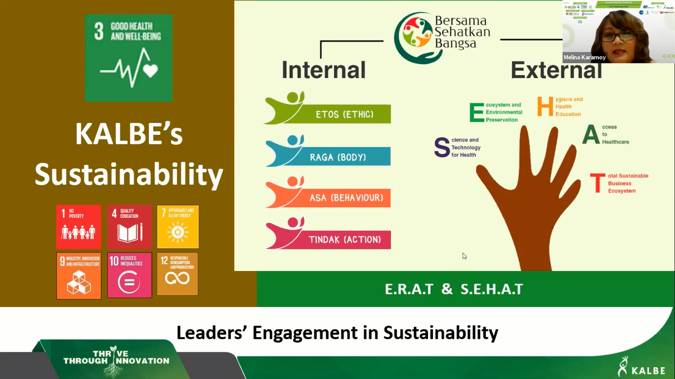“Untuk ‘leaders engagement in sustainability’, PT Kalbe Farma membaginya ke dalam beberapa tahapan. Yang pertama adalah memahami pimpinan (know your leaders). Lalu kenapa kita perlu melibatkan pimpinan (why we need to engage the leaders), kemudian bagaimana kita melibatkan pimpinan (how to engage the leaders) yang terdiri dari sisi ‘message’, ‘mindset’, dan ‘involvement’,” beber Melina.