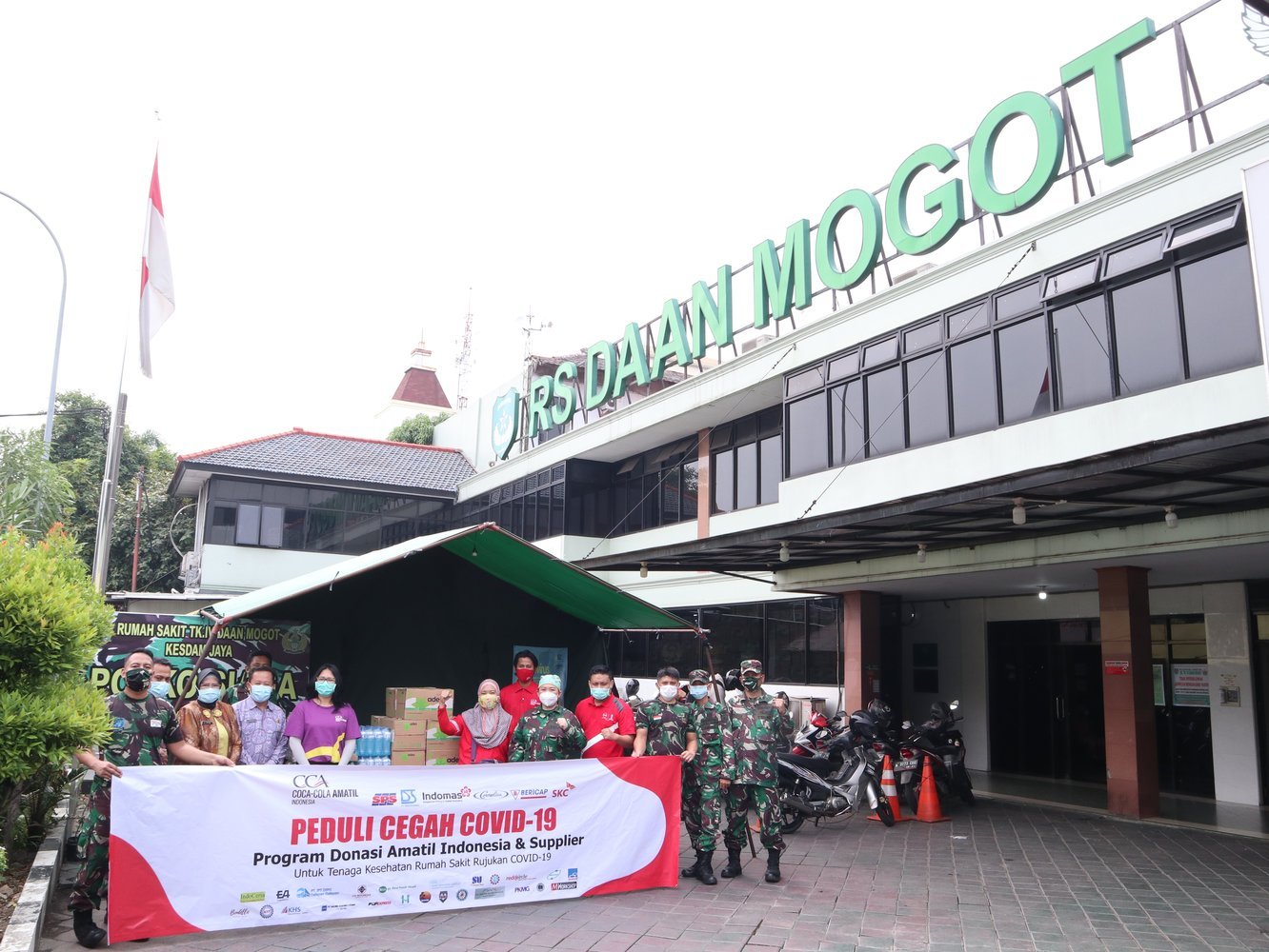 Ada pun penyerahan bantuan yang dilakukan di RS Daan Mogot, Tangerang, diterima oleh Kepala RS Daan Mogot, dr. Margaretta Limawan dengan tetap “menjaga jarak/physical distancing” sesuai arahan pemerintah.