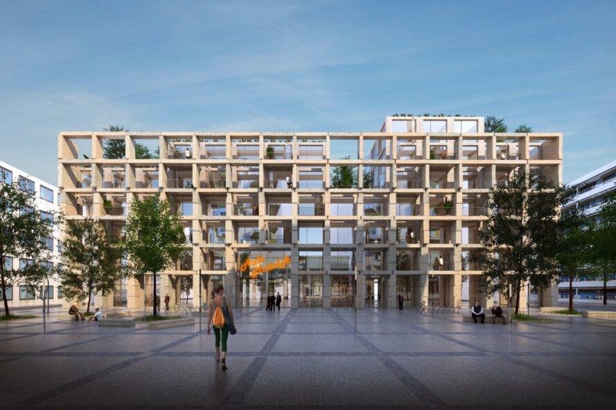 Para arsitek mengedepankan gedung bermaterialkan kayu untuk meredam jejak karbon. Aula Modula juga memiliki atap “hijau” yang dilengkapi saluran pengolah air limbah, teras sayuran dan fasilitas komunal greenhouse. Alat penghangat ruangan pun berasal dari gedung. Selain hunian, kompleks juga memiliki layanan rekreasi, perbelanjaan, yoga studio, pusat perbelanjaan, dan kebutuhan lain pada umumnya.