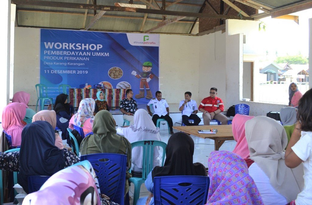 Bertempat di Balai Desa Karang-karangan, Kecamatan Bua, Luwu, Sulawesi Selatan, PT. Elnusa Petrofin (EPN) menggelar kegiatan Workshop Pemberdayaan Usaha Mikro, Kecil, dan Menengah (UMKM) produk perikanan. Kegiatan ini berlangsung pada Rabu (11/12/2019) dan di ikuti 64 peserta yang mayoritas adalah Ibu Rumah Tangga (IRT) yang tinggal di sekitar wilayah Fuel Terminal (sebelumnya disebut TBBM) Palopo. Lokasi yang berada di pesisiran Pantai Karang-karangan menjadikan warga daerah sekitar memiliki potensi untuk memproduksi beragam makanan dari olahan ikan.
