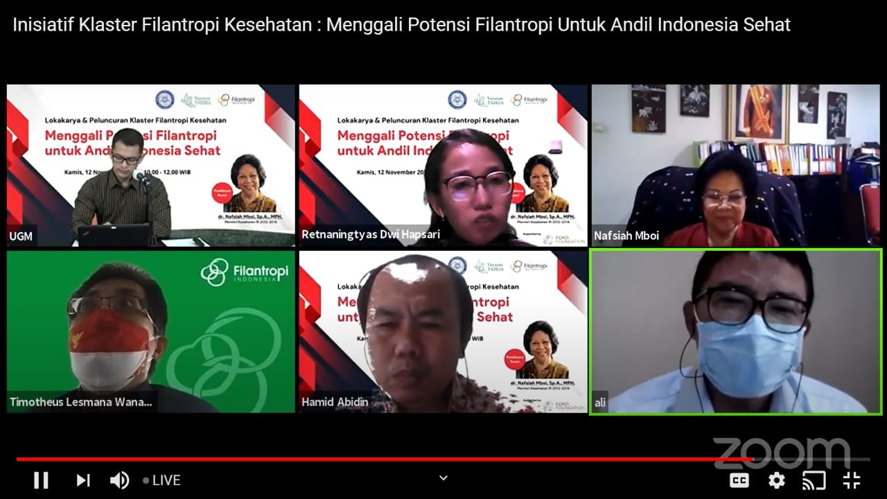 Peluncuran Klaster Filantropi Kesehatan ini digelar di sela-sela workshop “Menggali Potensi filantropi Untuk Andil Indonesia” yang digelar di Jakarta, Kamis (12/10/2020). Acara tersebut menghadirkan Nafsiah Mboi, mantan menteri kesehatan, sebagai pembicara utama dan dihadiri para pegiat filantropi Indonesia, khususnya yang bergerak di isu Kesehatan. Pada acara ini Filantropi Indonesia juga mengukuhkan dan mengenalkan PKMK FK-KMK UGM dan Tahija Foundation sebagai koordinator Klaster Filantropi Kesehatan kepada para pegiat filantropi.