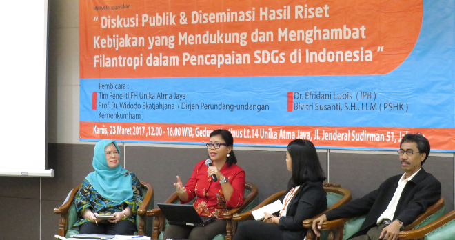 Jakarta – MajalahCSR. Beberapa kebijakan dari pemerintah dinilai tidak menguntungkan bagi sektor filantropi untuk mendukung pencapaian SDGs. Hal ini disampaikan atas penelitian dari Fakultas Hukum Unika Atmajaya dan Filantropi Indonesia.