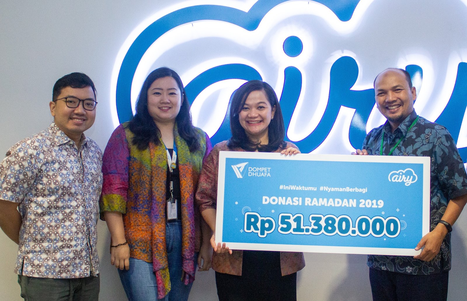 Airy, penyedia solusi budget travel terkemuka di Indonesia, telah menjalankan program donasi perdana: #NyamanBerbagi guna menggalang partisipasi pengguna dan berhasil menghimpun dana bantuan sebesar Rp 51.380.000. Berkolaborasi dengan lembaga nirlaba pelopor dalam pengelolaan dana sosial, Dompet Dhuafa, program telah berlangsung 5 Mei sampai 9 Juni 2019 dengan mengonversi transaksi pemesanan (berkode tertentu) menjadi sejumlah dana bantuan.