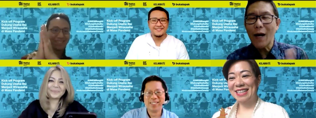 MajalahCSR.id – Masa pandemi mendorong aktivitas lebih banyak beralih ke teknologi digital, termasuk aktivitas ekonomi. Dalam rangka memperingati Hari Kartini tanggal 21 April 2021, Habitat berkolaborasi dengan INFINA, KelarBos dan Bukalapak memberikan serangkaian pelatihan digital marketing terhadap 100 perempuan hebat hasil seleksi terpilih. Mereka adalah para perempuan yang berupaya membantu suami yang mengalami penurunan pendapatan atau kehilangan pekerjaan akibat pandemi. Rangkaian pelatihan itu diberi nama program “Dukung Ibu Menjadi Wirausaha di Masa Pandemi”.