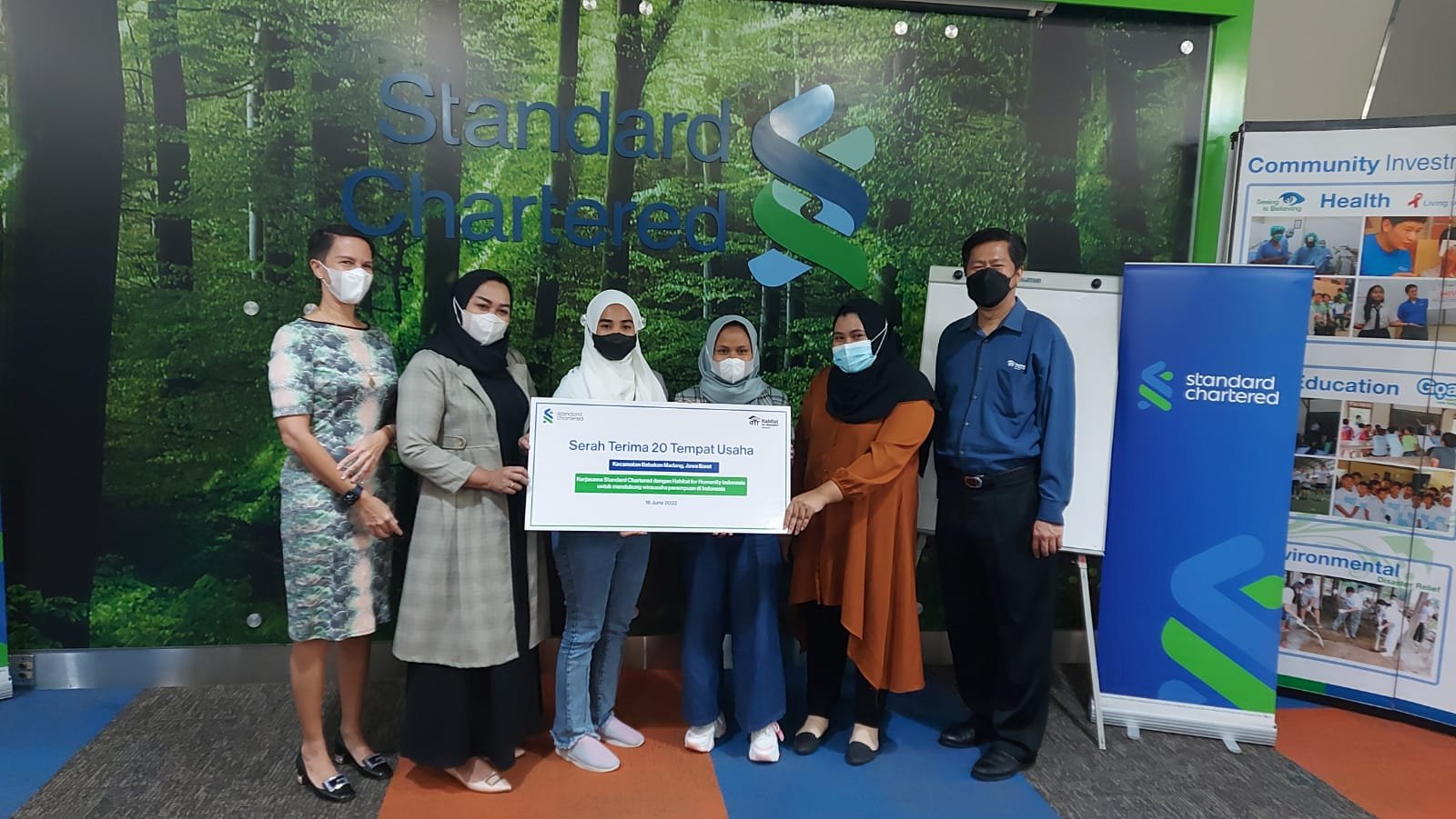 MajalahCSR.id – Standard Chartered Indonesia, bekerja sama dengan Habitat for Humanity Indonesia, Kamis (16/6/2022) lalu melakukan serah terima kepada para penerima manfaat proyek perbaikan dan pembangunan tempat usaha industri rumahanan di Desa Babakan Madang, Jawa Barat. Bantuan ini diberikan kepada 20 keluarga yang sebagian besarnya perempuan sebagai penopang ekonomi keluarga.