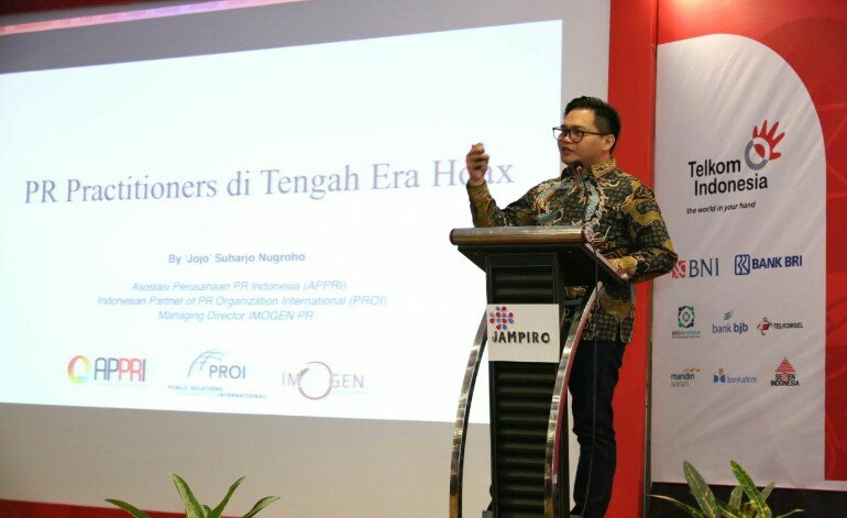 “Mau dikemas untuk pencitraan siapapun, hoax adalah berita bohong dan itu melanggar kode etik kehumasan,” kata Ketua Asosiasi Perusahaan Public Relations Indonesia (APPRISuharjo Nugroho dalam siaran persnya di Jakarta, Jumat (5/01).