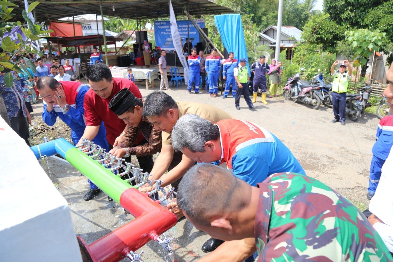 Senangnya masyarakat di Kelurahan Tes dan Taba Anyar, Kecamatan Lebong Selatan, Kabupaten Lebong, saat menerima bantuan fasilitas air bersih dari PT. PGE Hululais, Senin (14/1/2019).