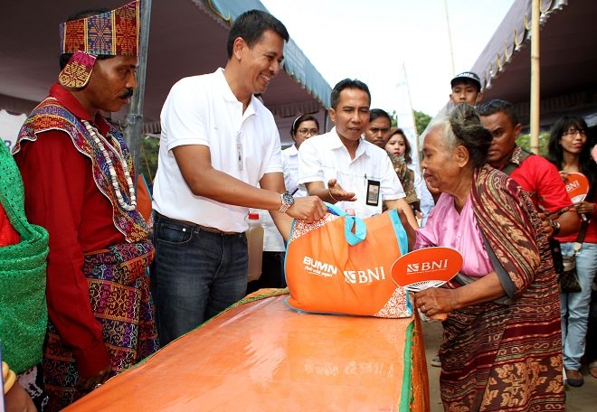 Maumere – Majalahcsr. Menyambut kegembiraan Tour De Flores Nusa Tenggara Timur, olahraga balap sepeda jalan raya yang berada di kelas 2.2, PT Bank Negara Indonesia (Persero) Tbk atau BNI mewarnai perhelatan dengan menggelar Pasar Murah Berbagi Sembako BNI. Acara ini diperuntukkan sekitar 1.000 warga Maumere dan sekitarnya.