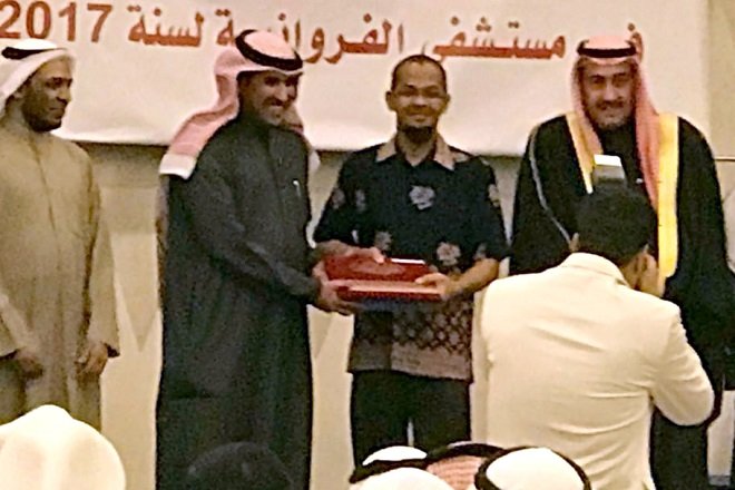 Farwaniya, Kuwait – Majalahcsr. Seorang Diaspora Indonesia yang bekerja sebagai profesi Perawat Ministry Of Health (M.O.H) Kuwait mendapatkan penghargaan sebagai Staff Nurse terbaik periode 2017 ditempatnya bekerja, Farwaniya hospital. Perawat tersebut Suparman, perawat yang berhasil mengharumkan citra perawat Indonesia di Kuwait, khususnya region Farwaniya.