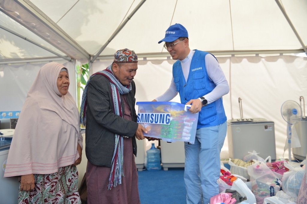 Pada Oktober 2018 Samsung telah mendonasikan Rp. 7,5 milyar melalui PMI. Disusul pada 19 November 2018 lalu Posko Samsung Peduli mulai memberikan layanan berupa cuci pakaian gratis, perbaikan alat elektronik Samsung yang rusak akibat bencana, pusat telekomunikasi, sarana hiburan, fasilitas edukasi untuk anak-anak, serta dapur umum. Setelah beroperasi selama 11 hari, tercatat Posko Samsung Peduli telah memberikan layanan mencuci hingga 5.224,3 kg atau 21.791 potong pakaian serta 8.040 paket makanan.