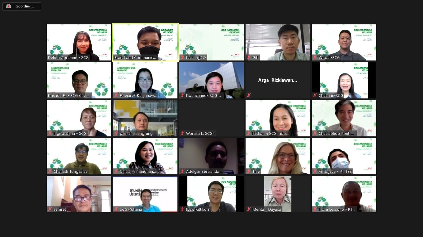 Visi pemerintah itu sejalan dengan SCG yang telah menerapkan konsep ekonomi sirkular pada bisnisnya sejak beberapa tahun belakangan. Wiroat Rattanachaisit, Country Director SCG Indonesia mengatakan, kegiatan webinar dan workshop CE Hour pertama kali yang diadakan oleh SCG Indonesia ini bertujuan untuk memperkaya pengetahuan karyawan SCG di Indonesia.