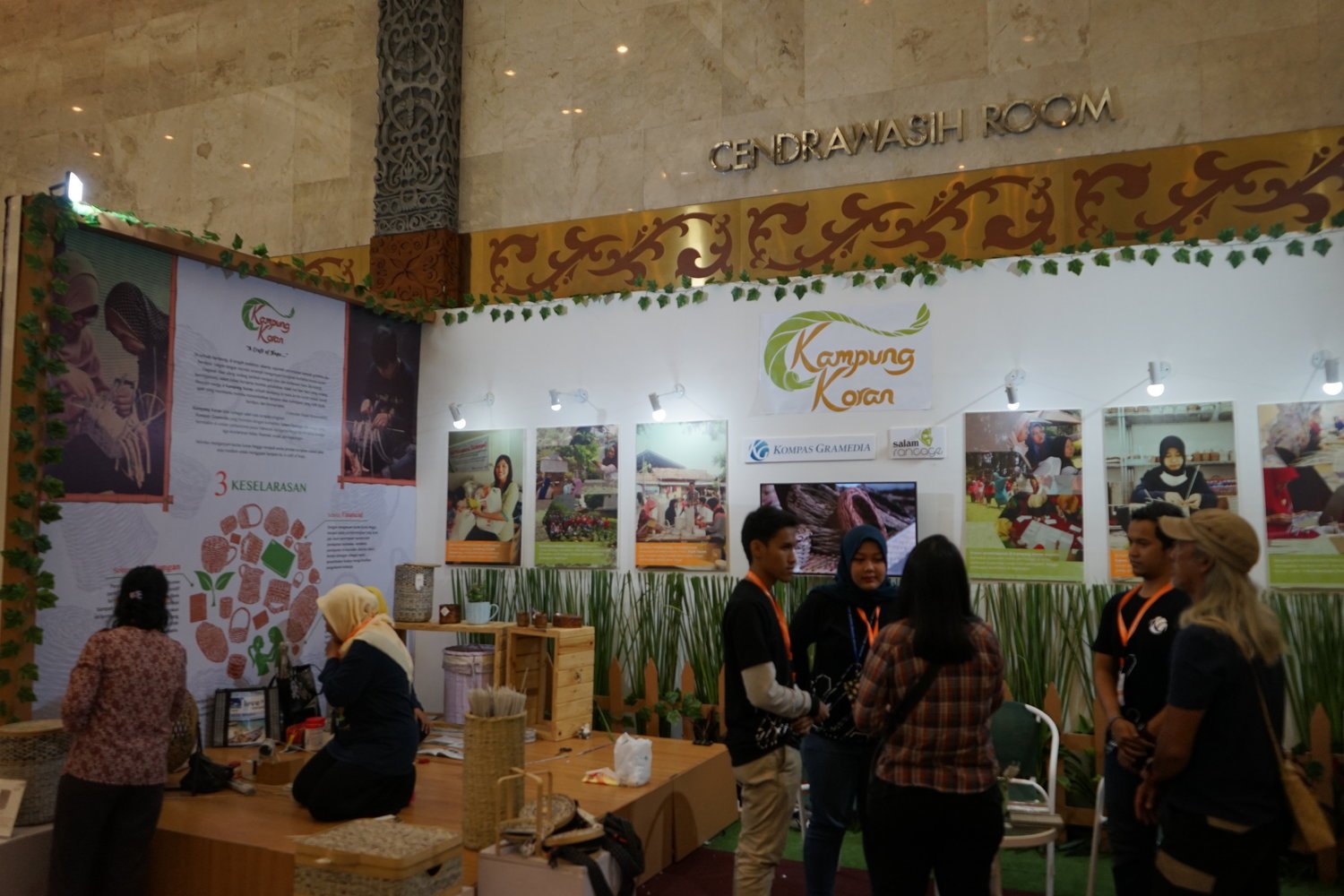 Menurut Ibu Aling dari Salam Rancage, pihaknya sudah berkolaborasi dengan para ibu binaan Kompas Gramedia dalam memasarkan produk. “Äwal idenya adalah bagaimana sampah koran bekas yang ada di kantor Kompas Gramedia ini bisa menjadi sesuatu yang bermanfaat yang bisa menggerakan ekonomi masayarakat sekitar (kantor Kompas Gramedia),” kata wanita berkacamata ini.