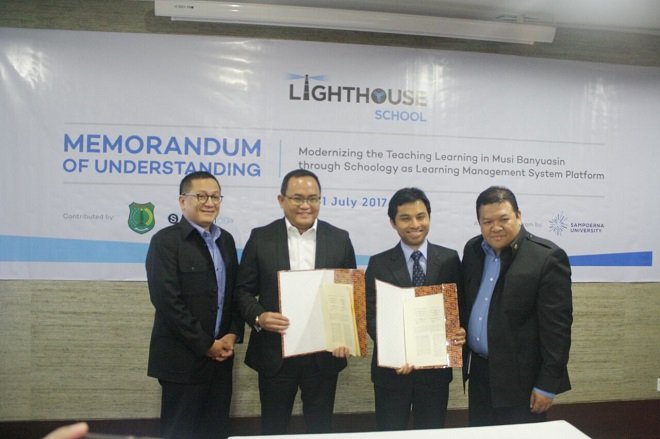 Langkah yang kolaborsi yang dituangkan melalui Memorandum of Understanding (MoU) antara Kabupaten Musi Banyuasin, SU, dan Schoology di Jakarta Senin (31/7). ini merupakan lanjutan dari Lighthouse School Program yang telah dijalankan sebelumnya di MUBA.
