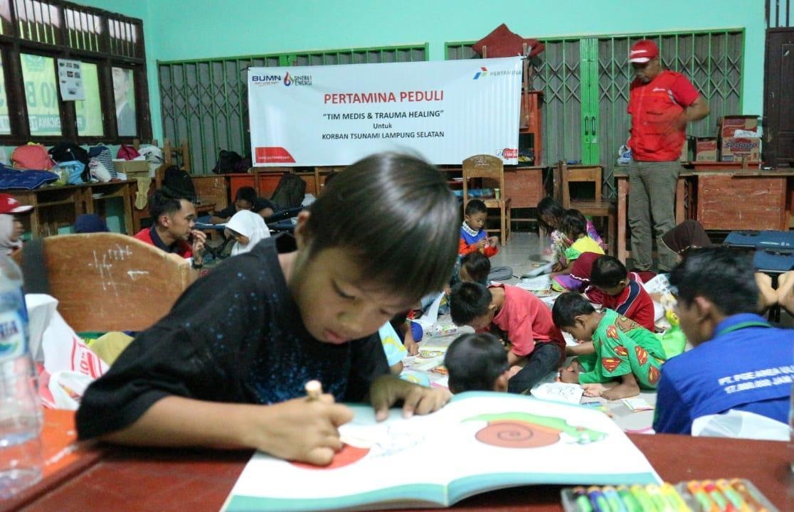 Sementara itu, puluhan anak-anak di Posko Pengungsian SMAN 1 Rajabasa diajak Imam Fadli, anggota CCA Pertamina untuk mewarnai, bercerita, dan bermain bersama-sama. “Ini adalah bentuk trauma healing yang sederhana untuk mengembalikan keceriaan anak-anak, agar mereka bisa semangat kembali pasca bencana yang melanda,” ujar Imam.